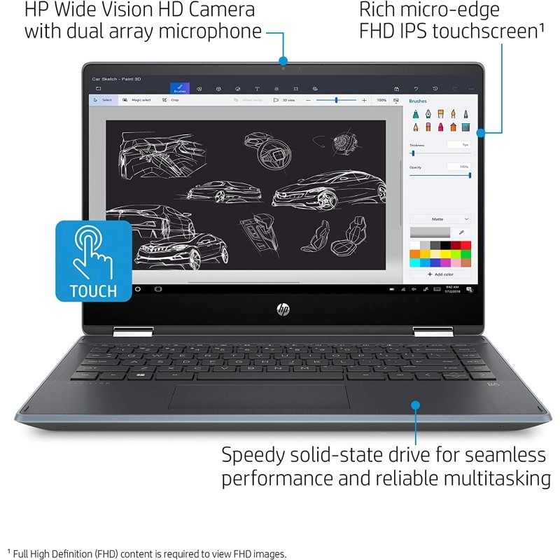 显示屏:14 英寸全高清 (1920 x 1080),触摸屏,250 尼特显示屏让您保持连接、娱乐和工作一整天。